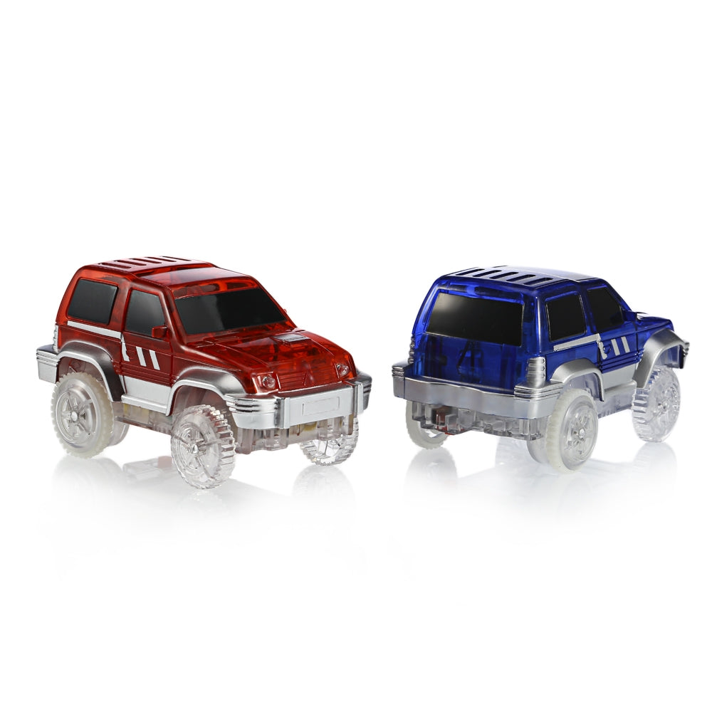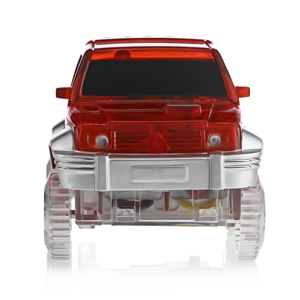 The Light-up Car features three red-blue color changing LED lights, including two lights before the glow in the track car, and one back light.