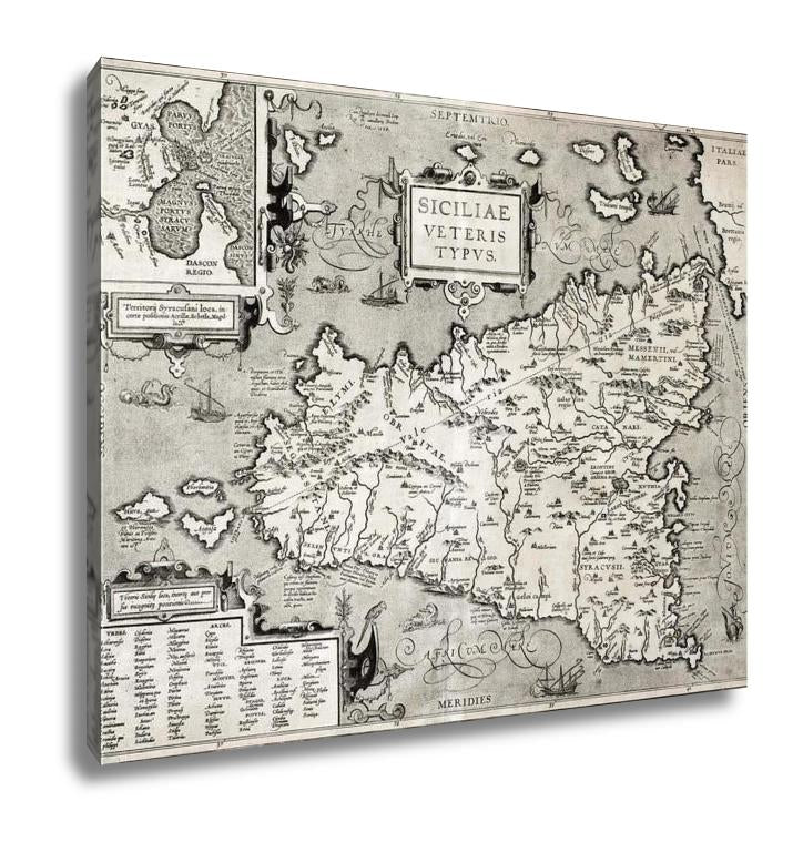 Gallery Wrapped Canvas, Sicily Old Map With Syracuse Detail