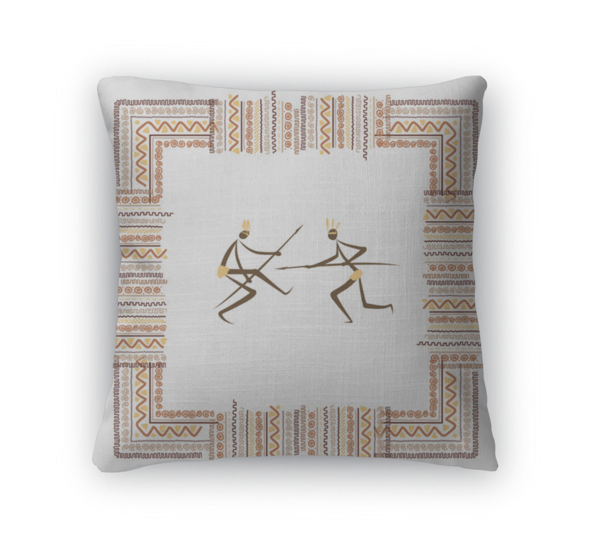 Throw Pillow, Ancient Tribal People Ethnic Ornament Frame For Your Design