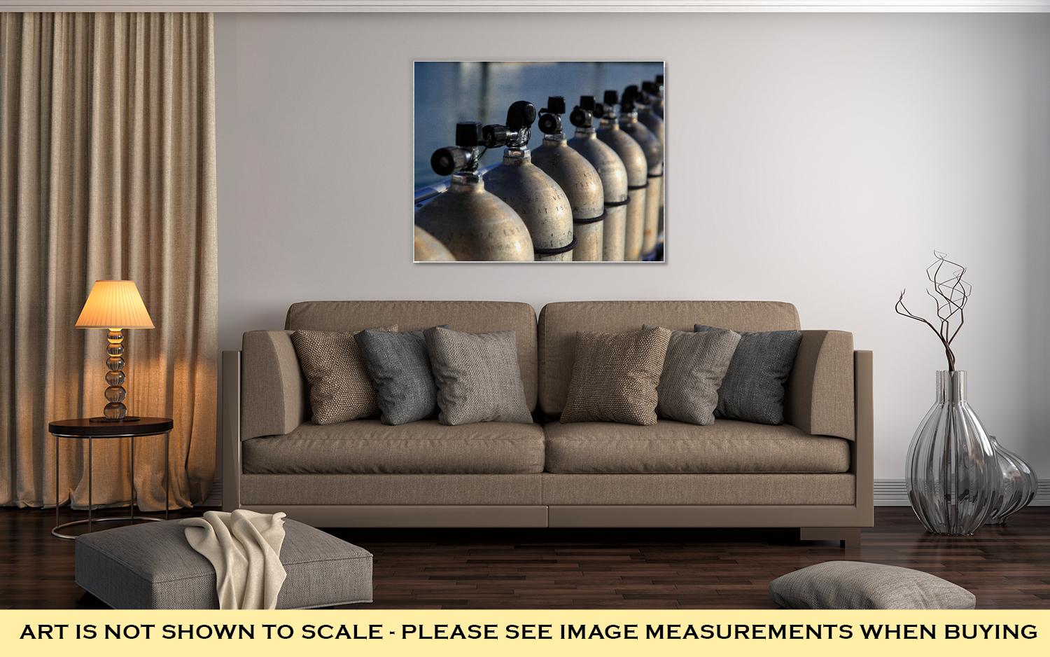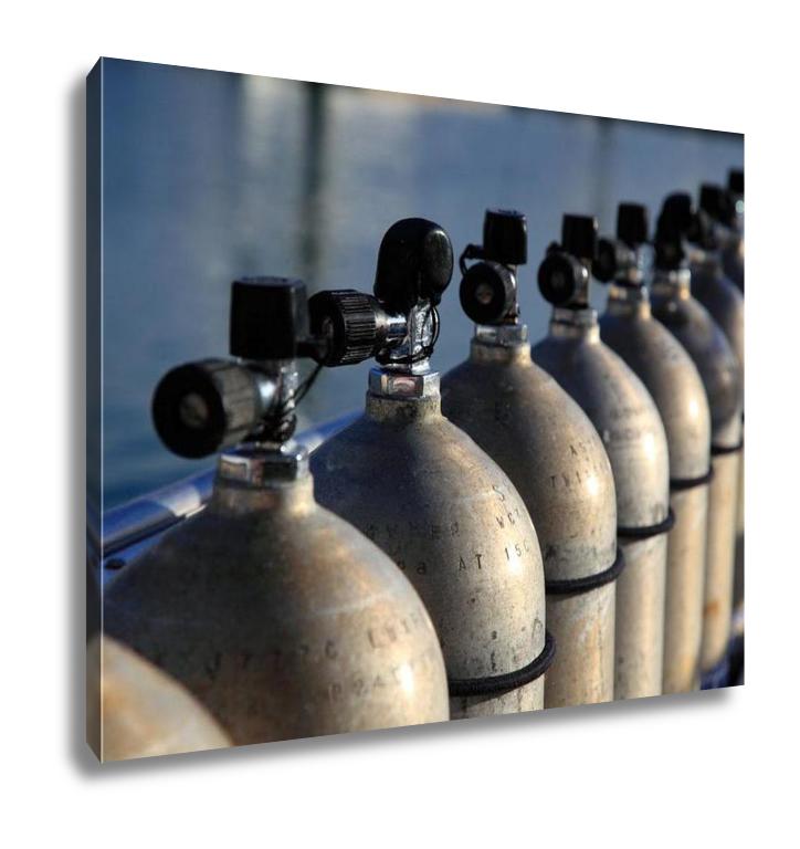 Gallery Wrapped Canvas, Row Of Compressed Air Tanks Like They Are Used During A Diving Trip