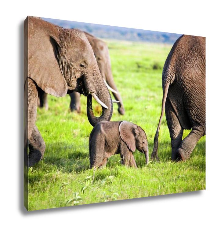 Gallery Wrapped Canvas, Elephants Family On African Savanna Safari In Amboseli Kenya Africa