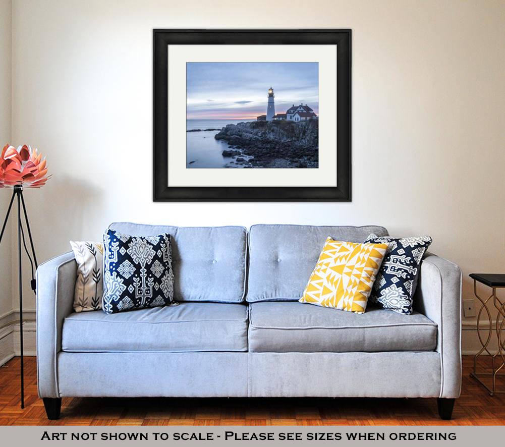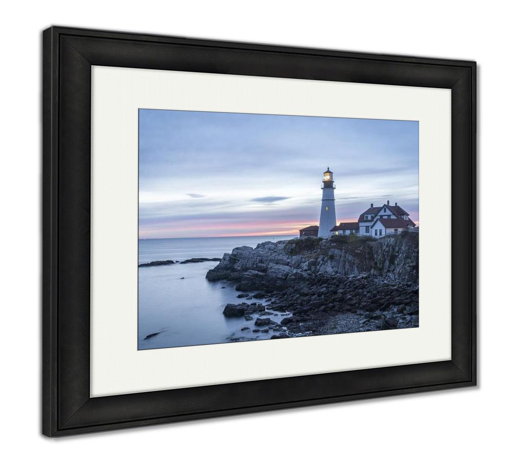 Framed Print, Light Cape Elizabeth Marks Entrance Shipping Channel For
