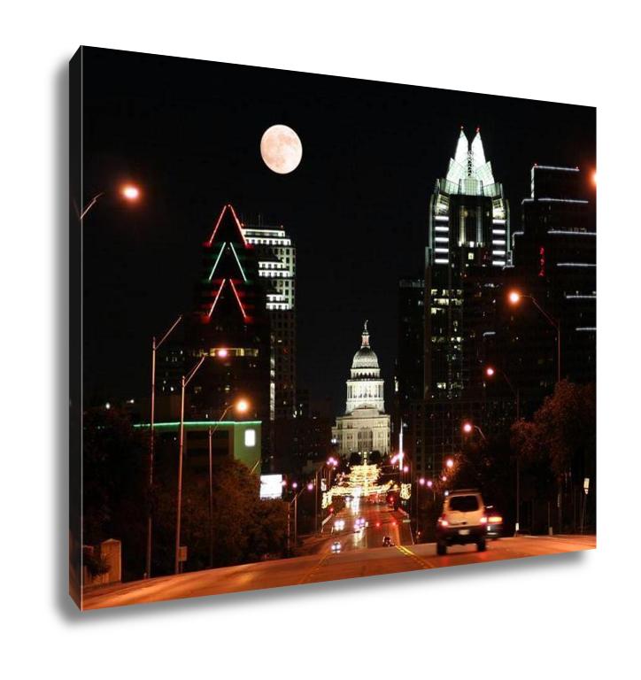 Gallery Wrapped Canvas, State Capitol Building At Night In Downtown Austin Texas