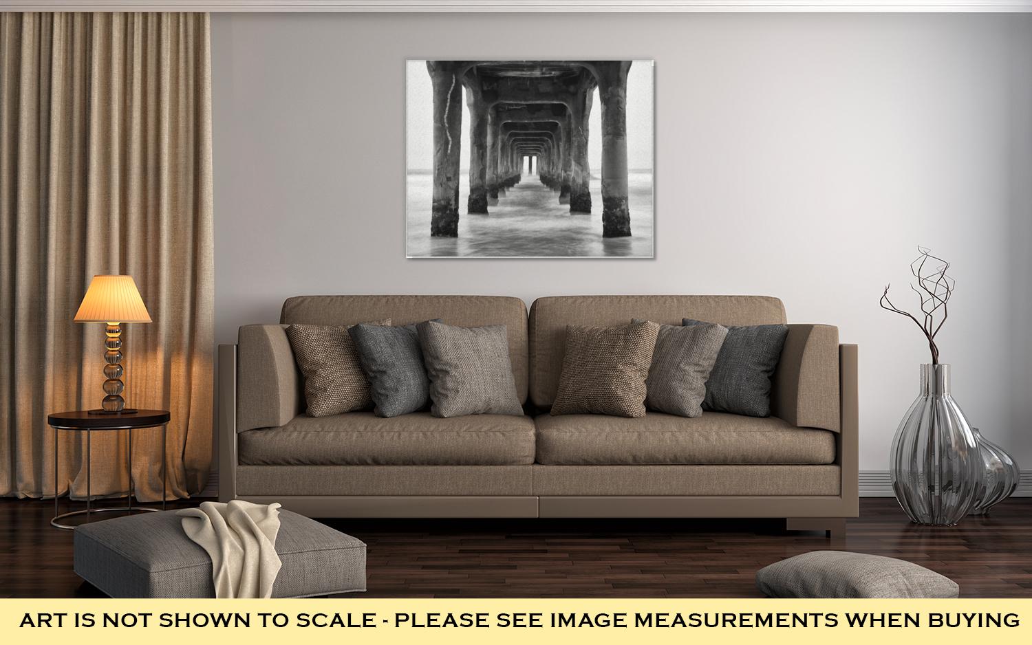 Gallery Wrapped Canvas, Under The Pier Black And White Photo Manhattan Beach California