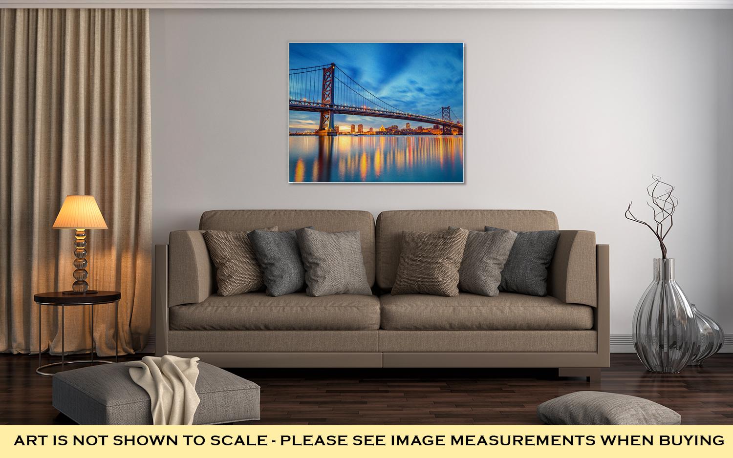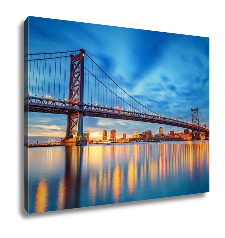 Gallery Wrapped Canvas, Ben Franklin Bridge In Philadelphiat Sunset