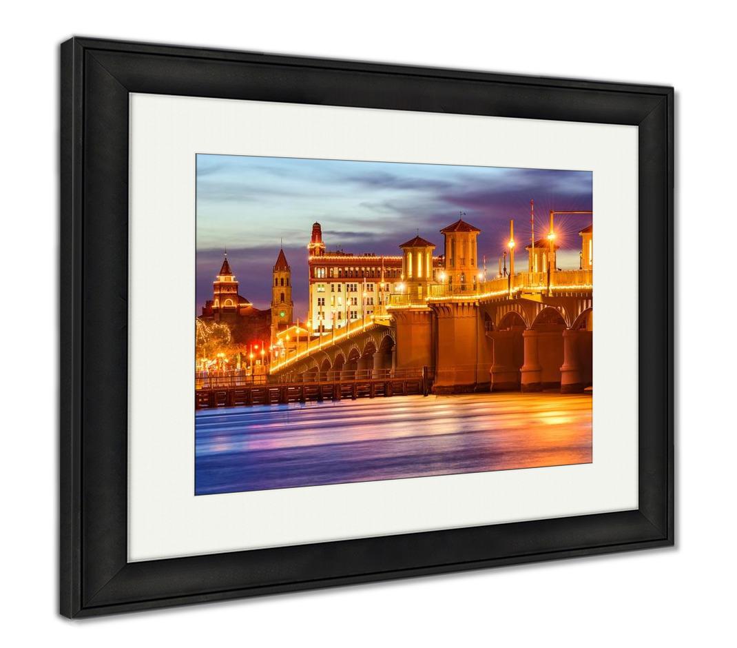 Framed Print, Jacksonville St Augustine Floriduscity Skyline Bridge Lions