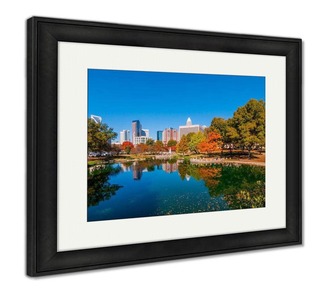 Framed Print, Charlotte City Skyline Autumn Season