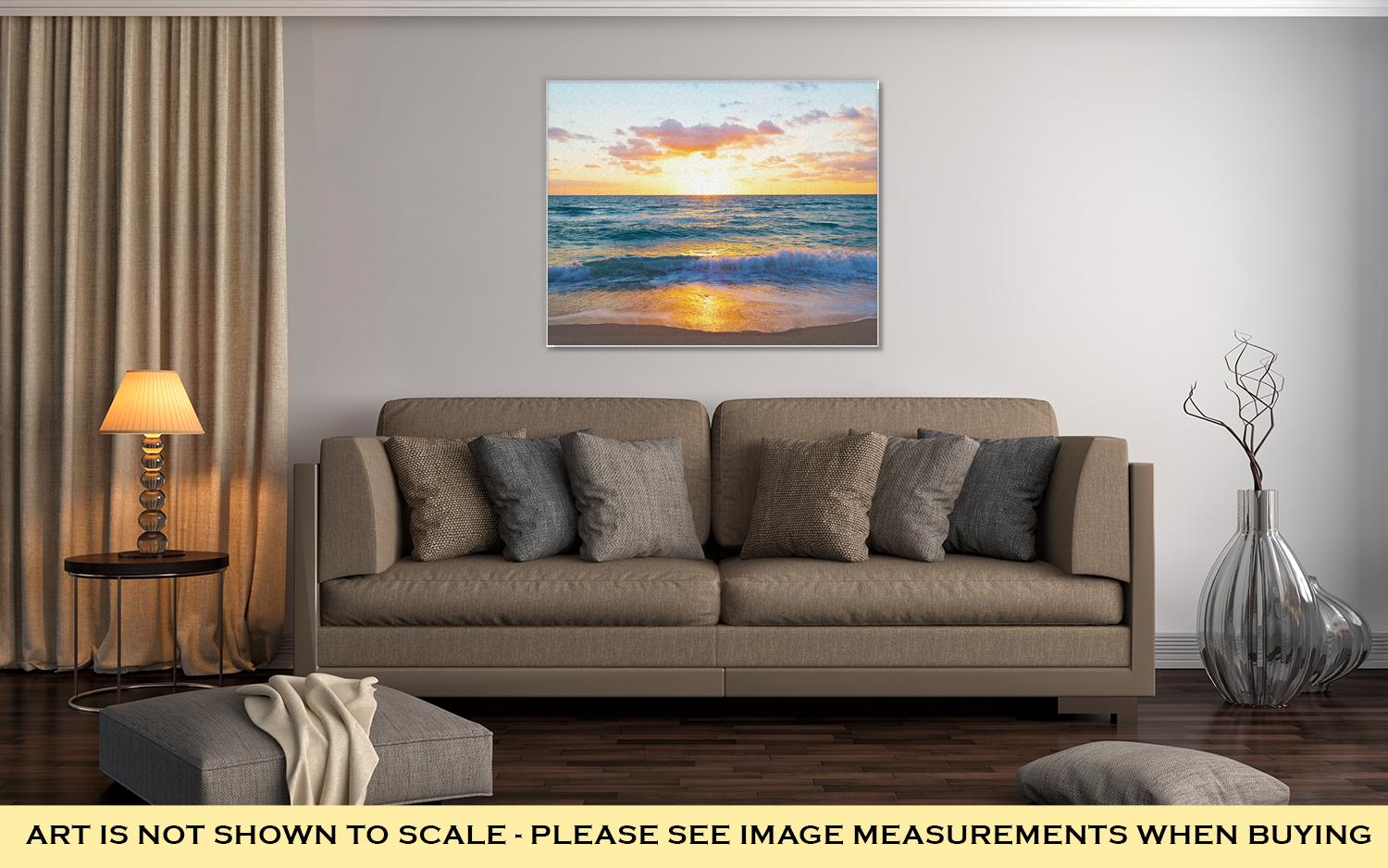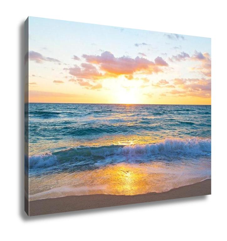Gallery Wrapped Canvas, Sunrise Over Ocean In Miami Beach Florid