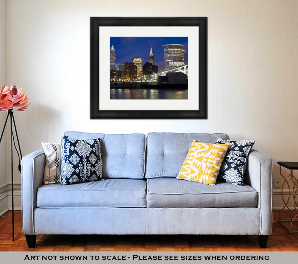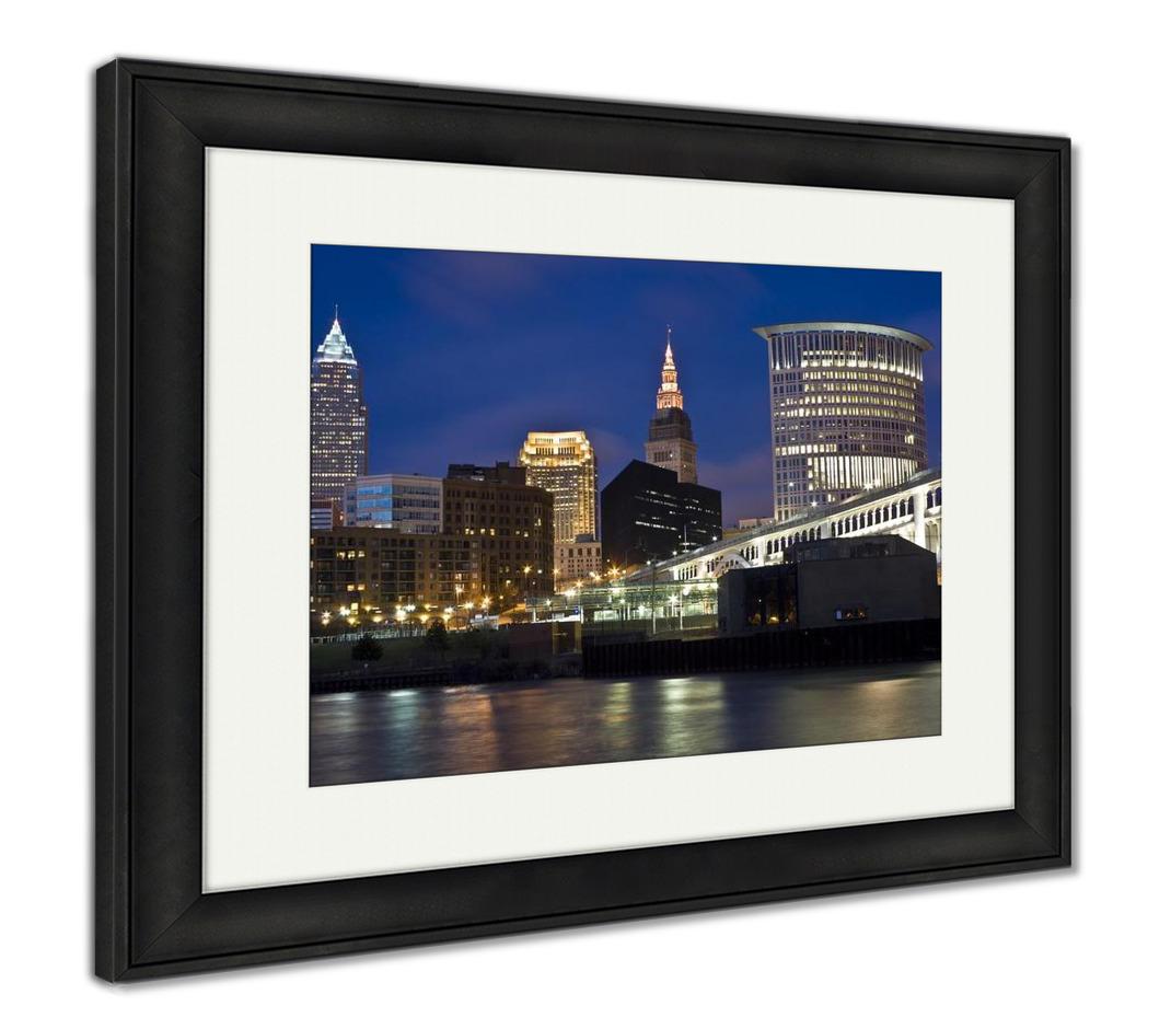 Framed Print, Skyline Of Cleveland Evening Time Usnorth Americ