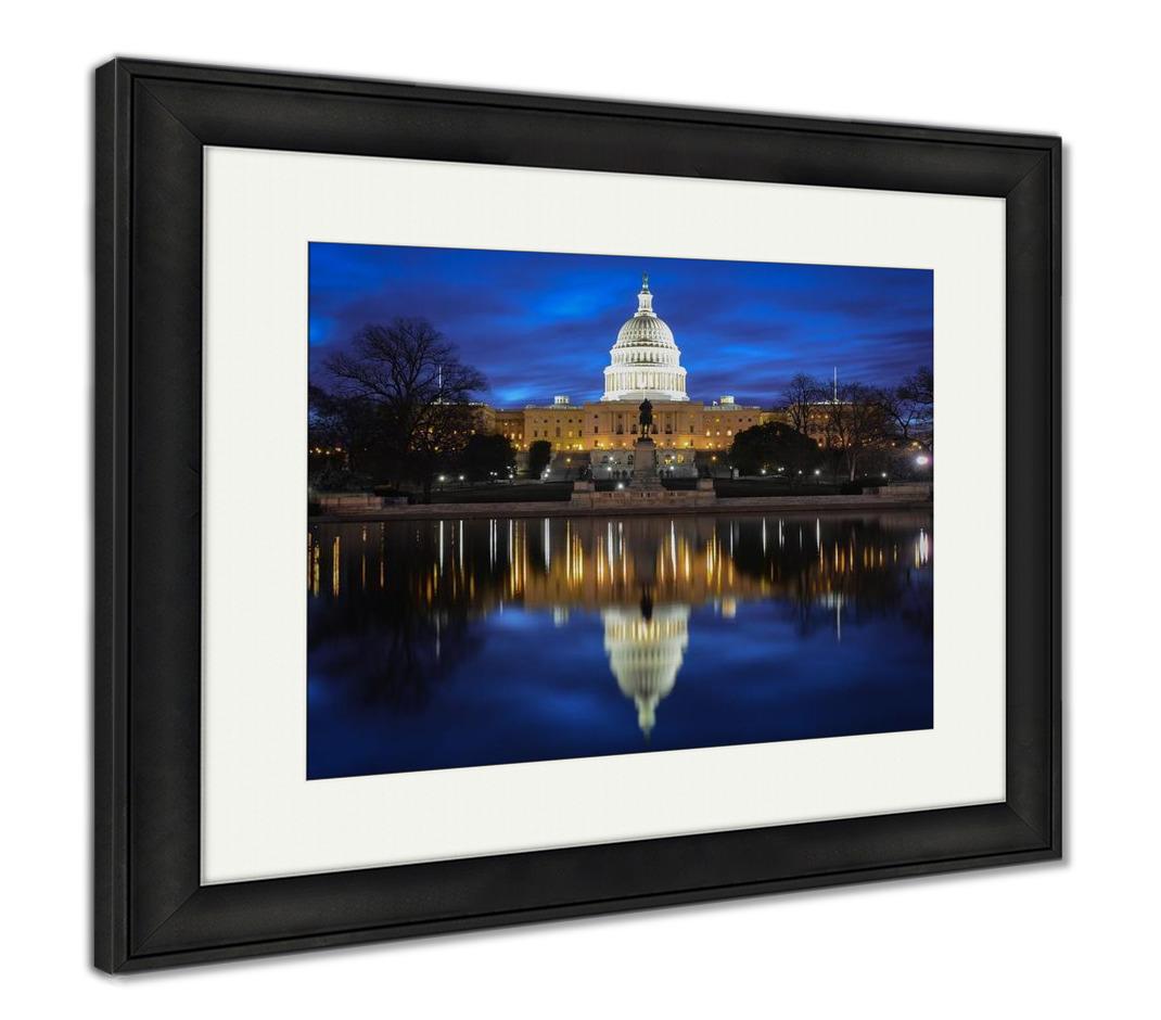 Framed Print, Capitol Building At Night Washington Dc United States Of America