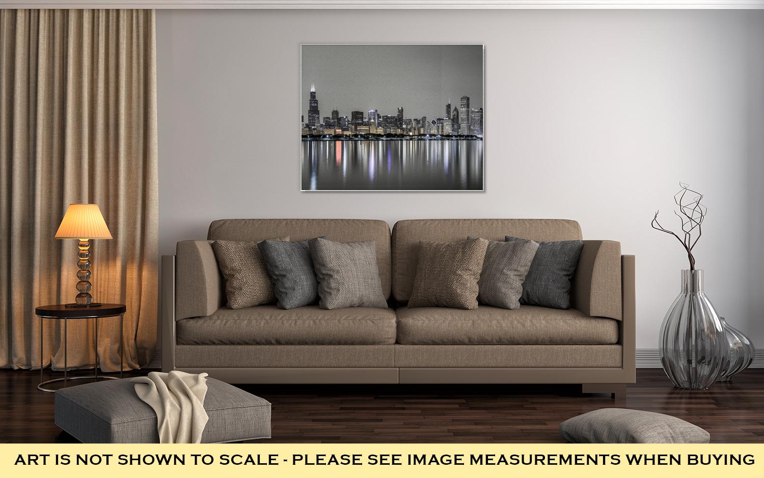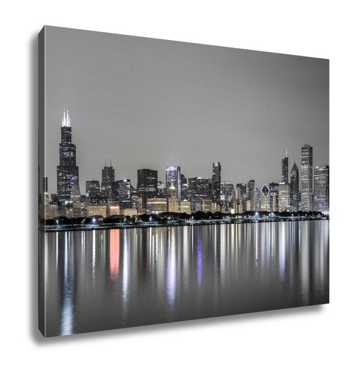 Gallery Wrapped Canvas, View Of Chicago Skyline Over Lake Michigan At Night