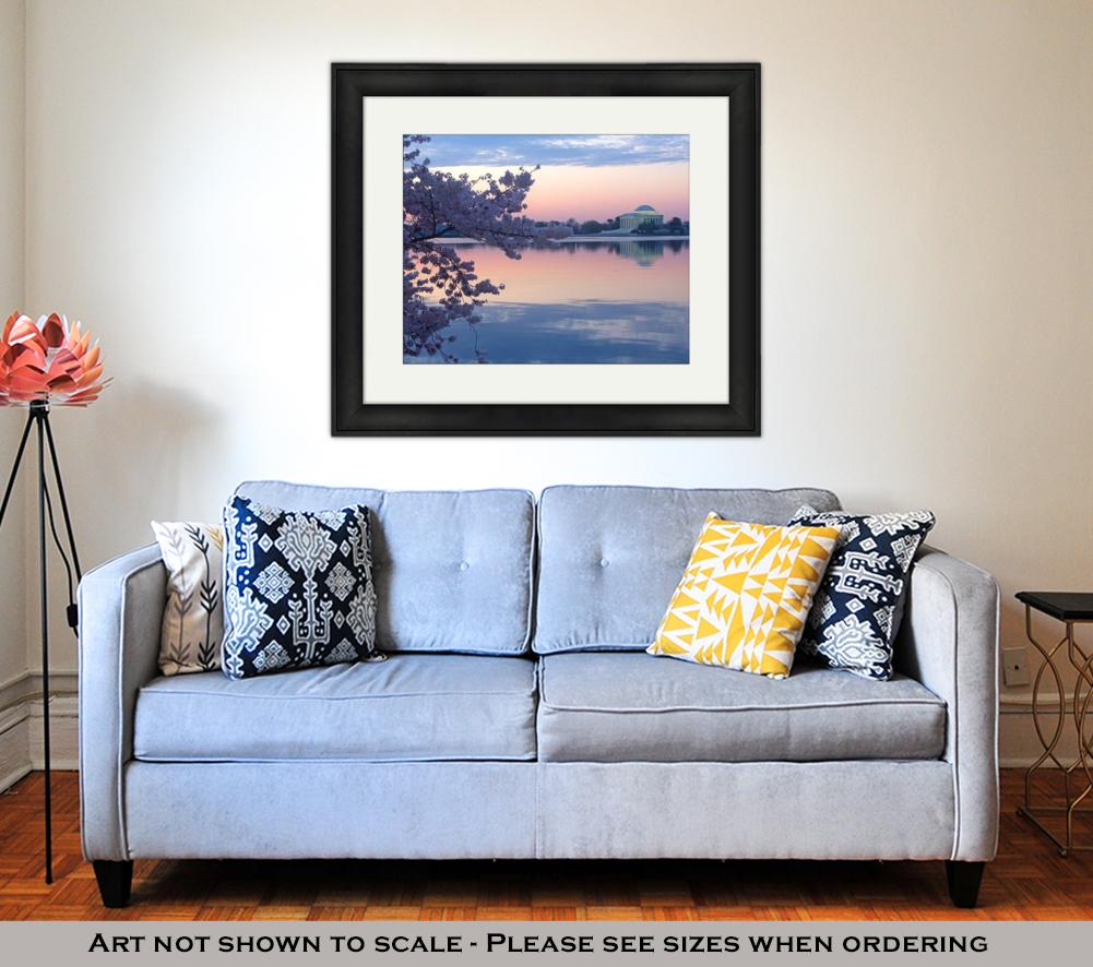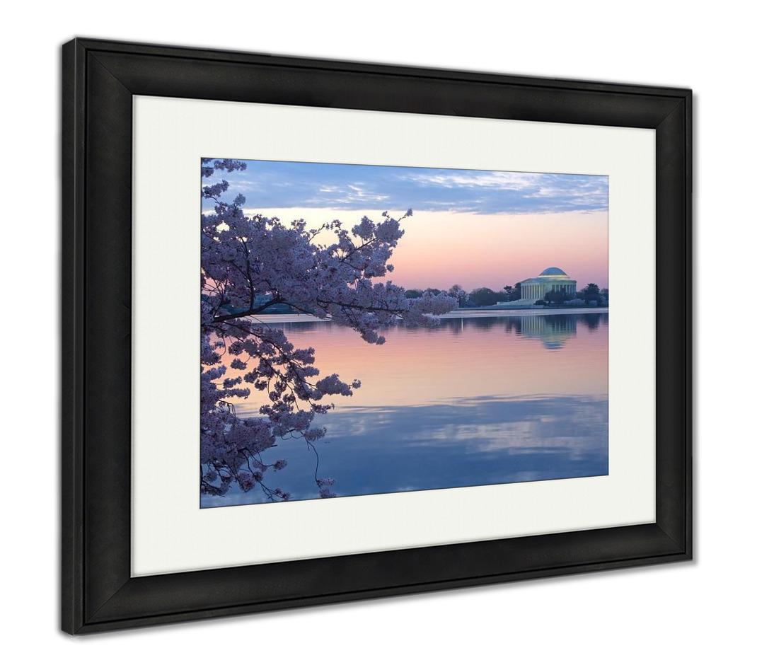 Framed Print, Jefferson Memorial Cherry Trees Blossom Around Tidal Basin
