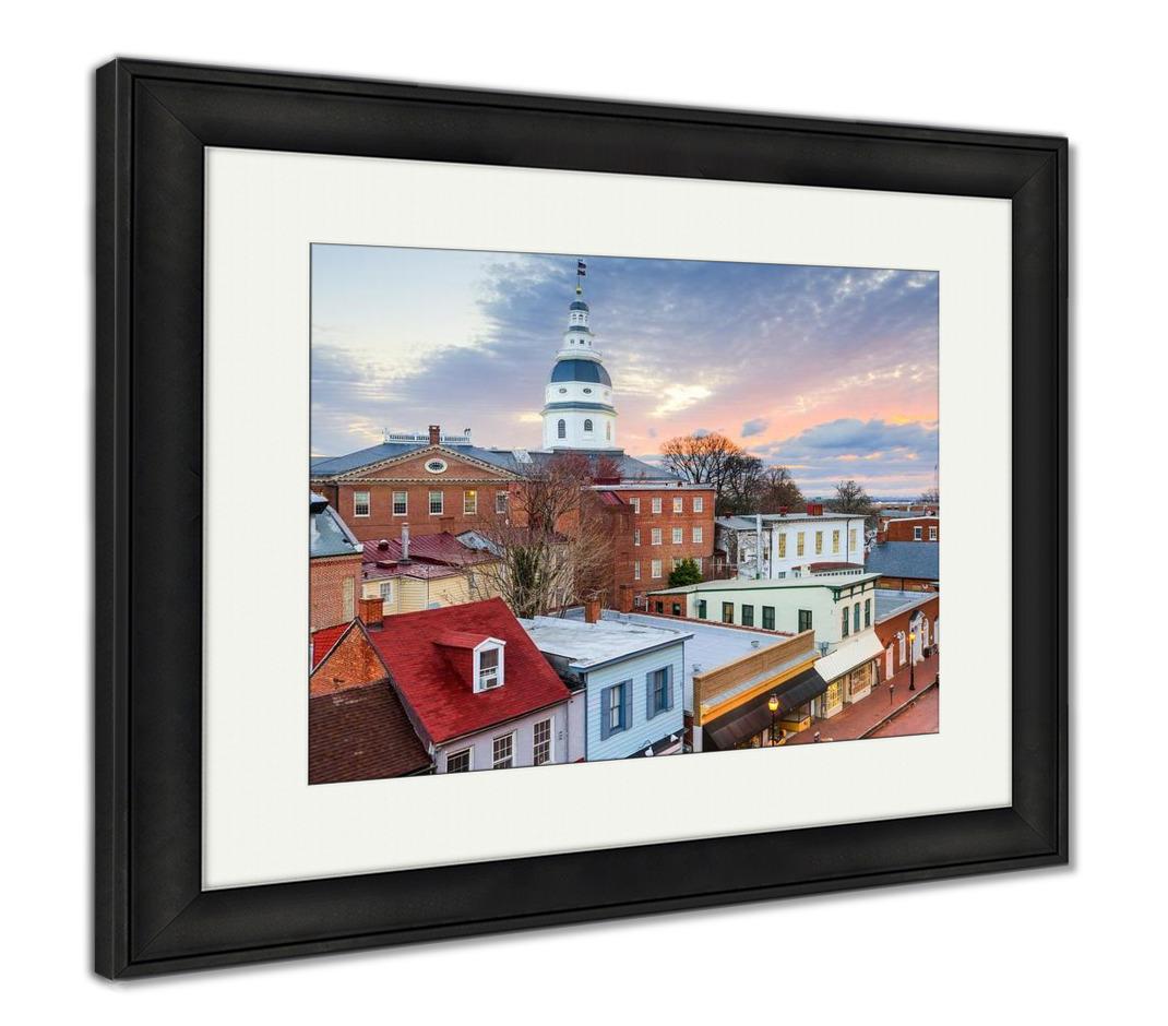 Framed Print, Capitol Building Annapolis Maryland Usskyline And State House