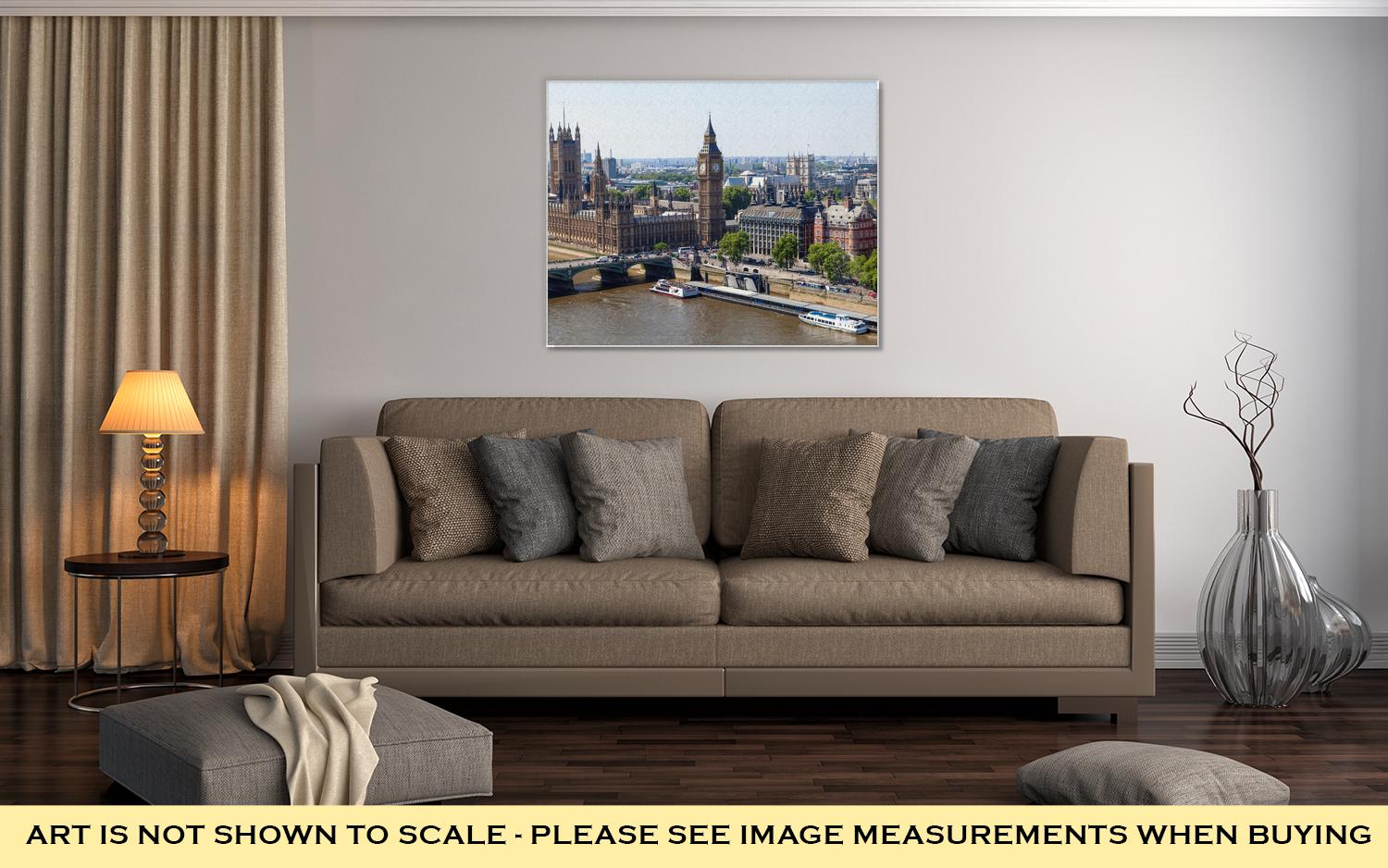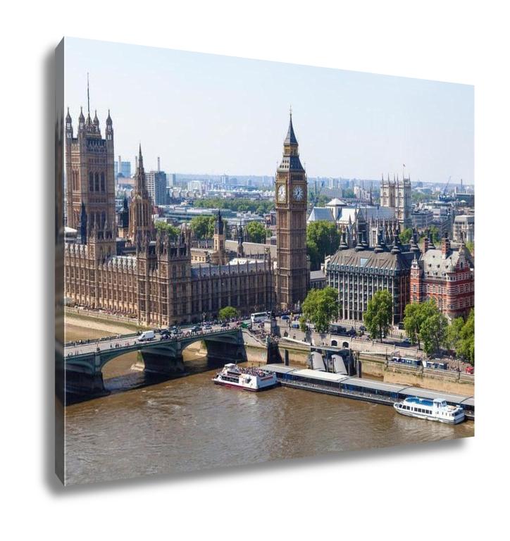 The artist who provided this image described the image in this way: London with Big Ben and Westminster Palace in an aerial view, London, England