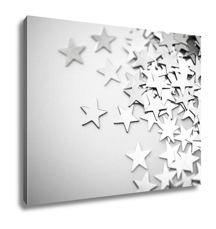 Gallery Wrapped Canvas, Silver Stars Spilling Out On White Surface Intentionally Shot In Surreal Tone