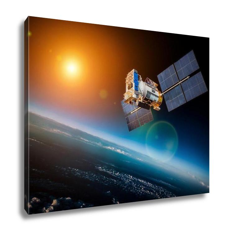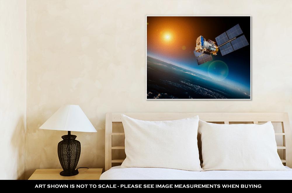 Gallery Wrapped Canvas, Space Satellite Orbiting The Earth On A Star Sun Elements Of This Image