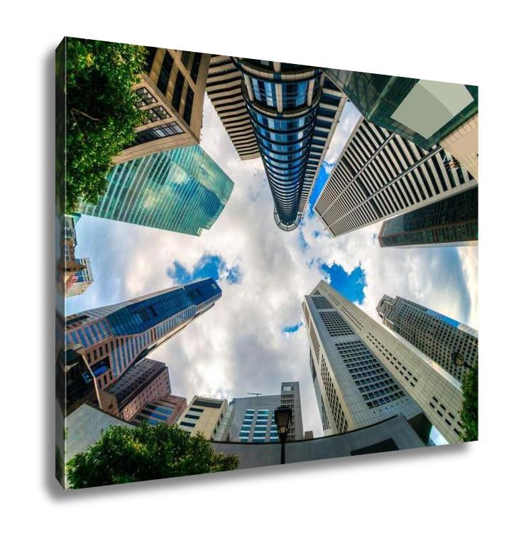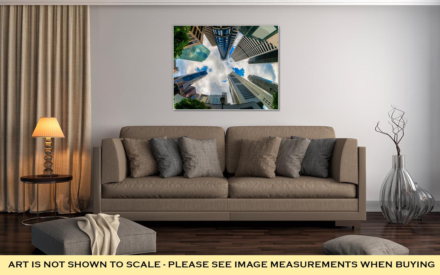 The artist who provided this image described the image in this way: Fish-eye view of Singapore city skyline