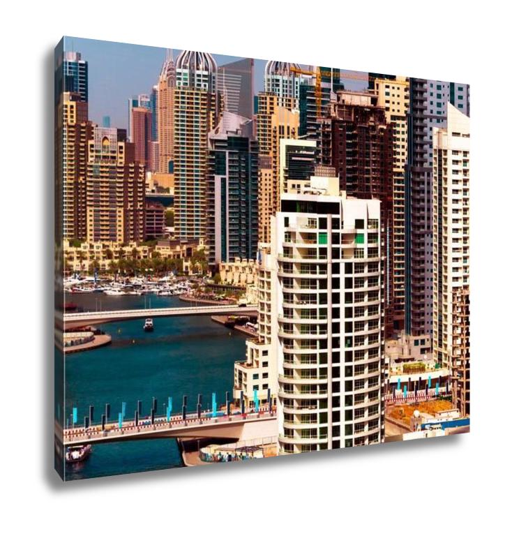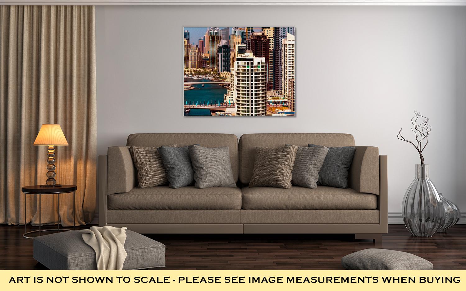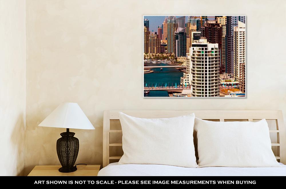 Gallery Wrapped Canvas, Amazing Colorful Dubai Marinskyline Water Canal Expensive Yachts