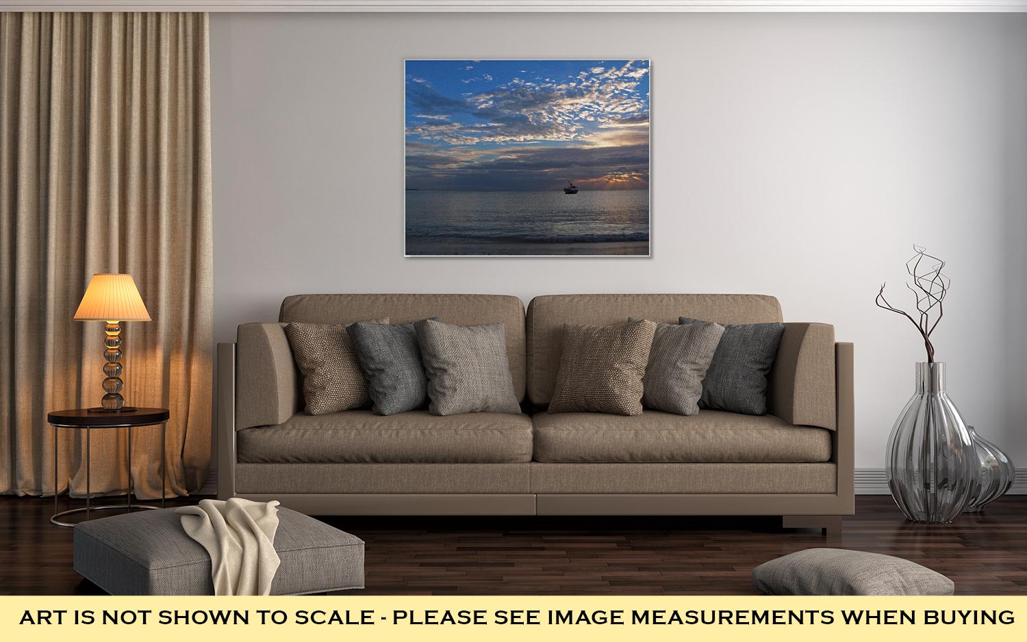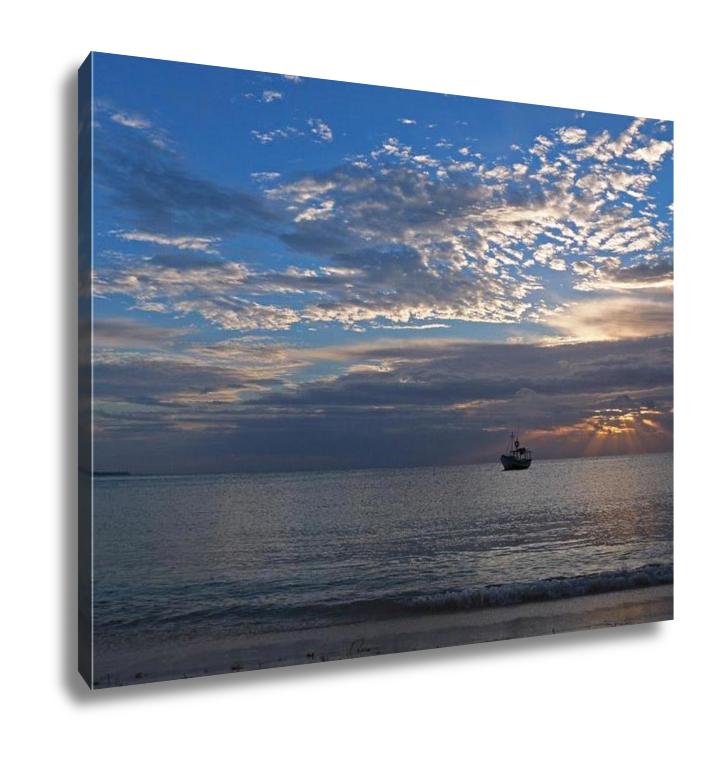 Gallery Wrapped Canvas, Sunrise View Of Mexican Fishing Boat In Cancuns Puerto Juarez Harbor