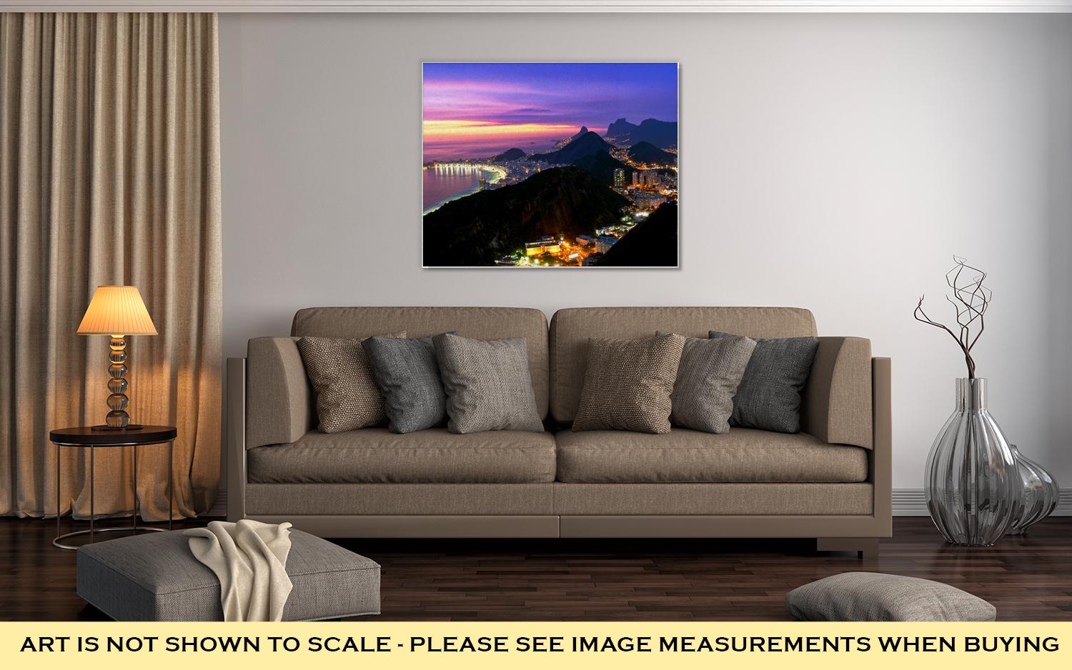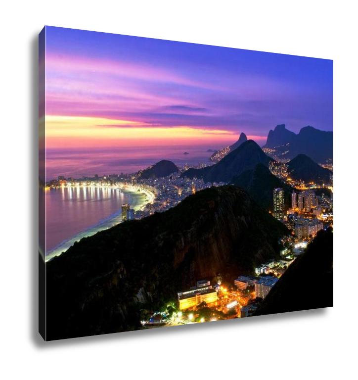 Gallery Wrapped Canvas, Night View Of Copacabana Beach And Botafogo In Rio De Janeiro