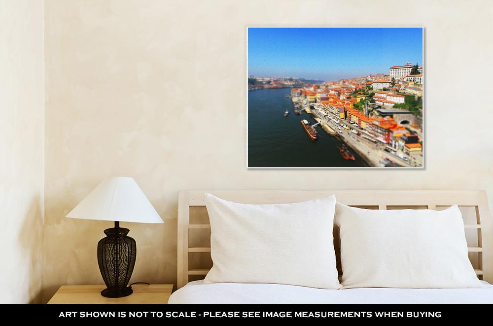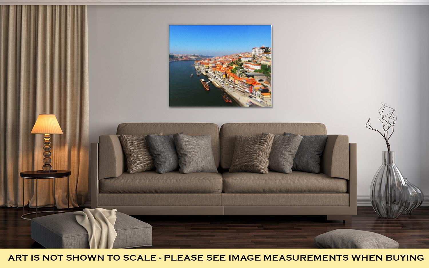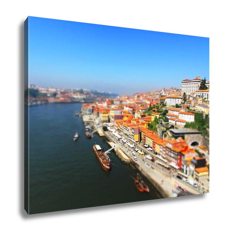 Gallery Wrapped Canvas, Bird Eye View Of Douro Riverside From The Dom Luiz Bridge Porto Portugal