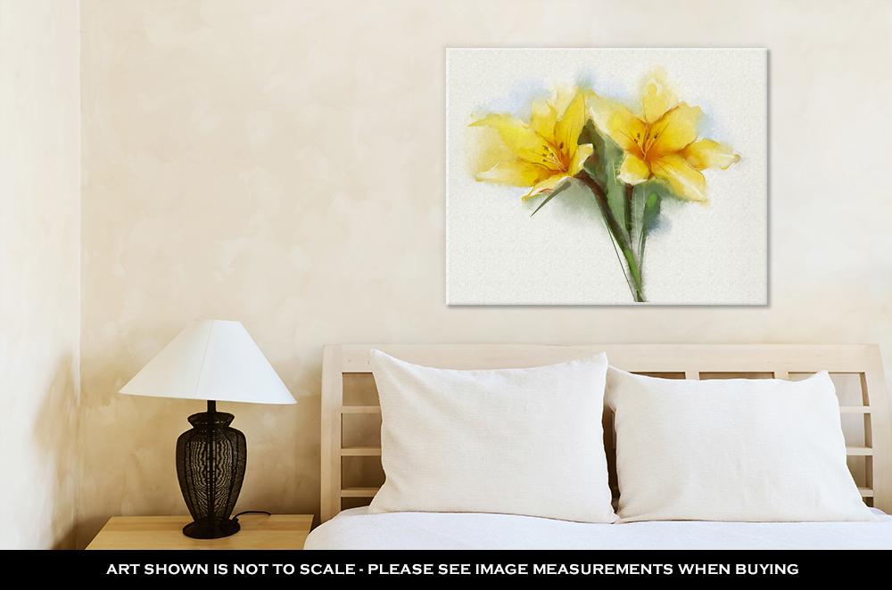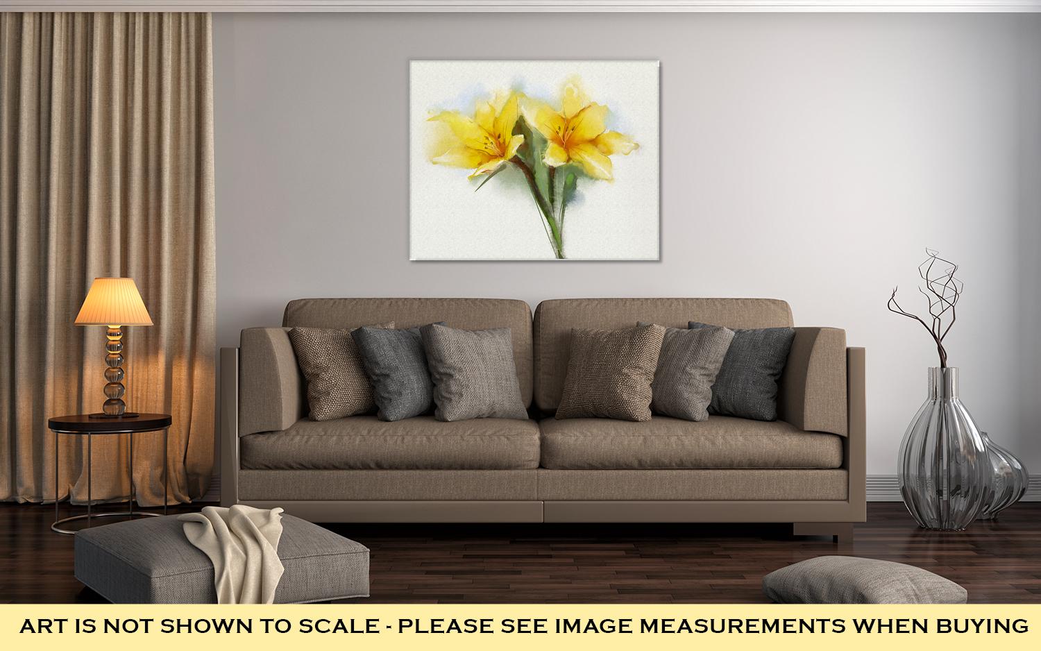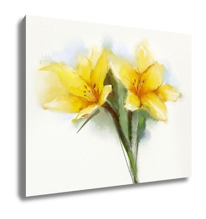 Gallery Wrapped Canvas, Watercolor Painting Yellow Lilies Flower